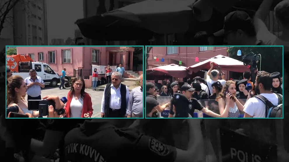 Eylemden önce adliye karşısındaki kafede oturan tutuklu yakınlarına polis, Kağıthane Kaymakamlığı tarafından yasağı gerekçe göstererek basın açıklaması yapamayacaklarını söyledi. Fince Akman bu yasağa tepki gösterirken aileler ve beraberindekiler, engellemeye karşı oturma eylemi gerçekleştirdi.