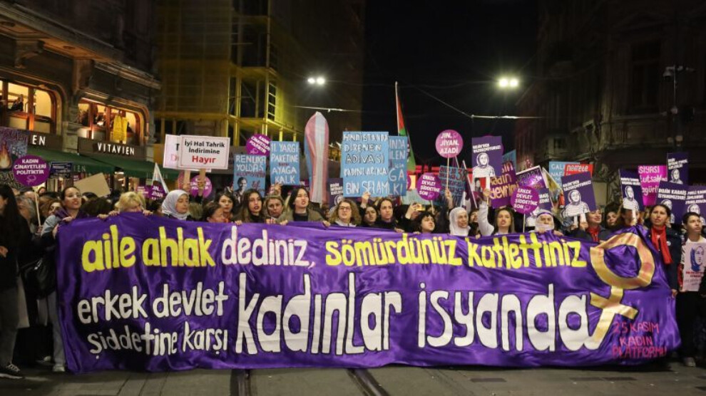 İstanbul'da 25 Kasım Kadın Platformu öncülüğünde binlerce kadın, “Hayatlarımız için, özgürlüğümüz için, eşitlik için, birbirimiz için, bir kişi daha eksilmemek için erkek-devlet şiddetine karşı bir aradayız. Mücadeleye devam edeceğiz” dedi.