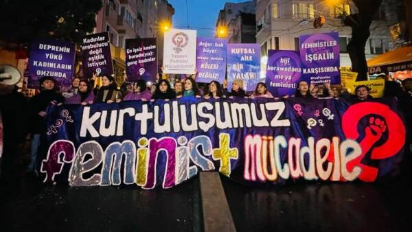 Savaşın, patriyarkanın, transfobinin, homofobinin, kapitalist emek sömürüsünün, ırkçılığın olmadığı bir dünyayı hayal etmekten vazgeçmeyeceğiz. Bunun için umudumuz, gücümüz, hayatımız ve kurtuluşumuz feminist mücadele.”