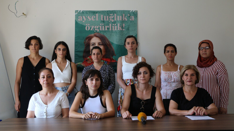 Açıklamada konuşan ÖHD Mersin Şubesi Kadın Komisyonu’ndan avukat Figen Alp, şu ifadelerde bulundu: Avukatlar, Aysel Tuğluk’un Kobanê Davası’ndan tahliye edilmesi ve infazının ertelenmesi için birçok girişimde bulundu. Mahkeme heyeti ısrarla Aysel Tuğluk’u savunma yapmaya zorladı. Avukatını dahi tanıyamayan Aysel Tuğluk’a zorla savunma yaptırılmaya çalışılarak psikolojik şiddet uygulanmıştır. Heyet, uygulamış olduğu psikolojik şiddet sonrası Aysel Tuğluk’un ‘sorgusunun yapılmış olması ve bu aşamada adli kontrol hükümlerinin yeterli olacağı’ gerekçesi ile tahliye kararı vermiş fakat ne ilginçtir ki yargı Aysel Tuğluk’un ağır seyreden hastalığını tahliye için gerekçe yapmamıştır.”