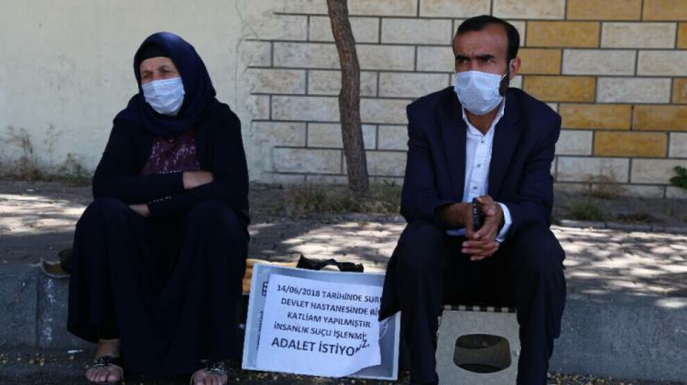 Urfa Adliyesi önünde oturma eylemi yapan Emine ve Ferit Şenyaşar, Konya’da Kürtlere yönelik yapılan ırkçı saldırıyı lanetledi.
