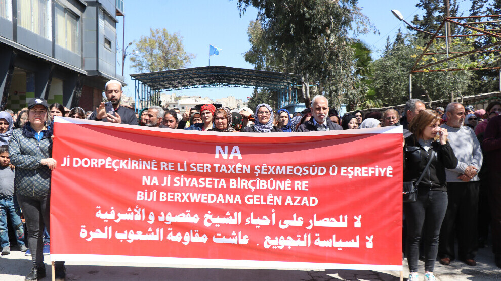 Suriye rejiminin ambargo politikalarına tepki gösteren Şêx Meqsûd ve Eşrefiyeliler, “Kimse bizi açlık ile terbiye edemez” diyerek, ambargo siyasetinden vazgeçilmesi çağrısında bulundu.