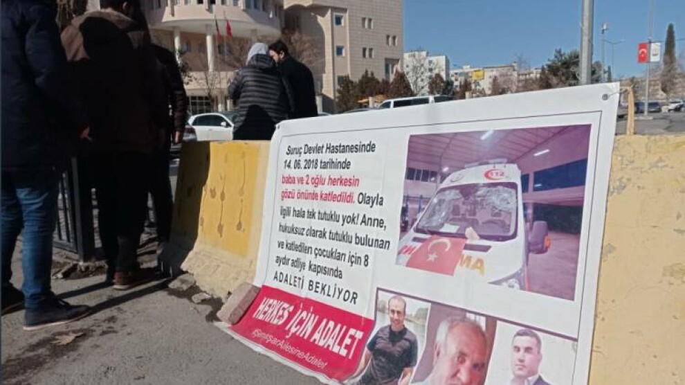Riha- Suruç’ta 14 Haziran 2018 tarihinde AKP Milletvekili İbrahim Halil Yıldız’ın koruma ve yakınlarının saldırısı sonucu eşi ve iki oğlunu yitiren Emine Şenyaşar ile saldırılardan yaralı kurtulan oğlu Ferit Şenyaşar’ın Urfa Adliyesi önünde 9 Mart'ta başlattığı adalet nöbeti devam ediyor.