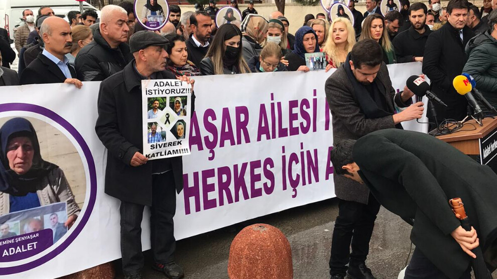 * Şenyaşar ailesinin adalet arayışı, Türkiye’deki hukuksuzluğun, cezasızlık politikasının sembolü olduğu kadar aynı zamanda çarpık ve tıkanmış olan hukuk mekanizmasına rağmen adaletten vazgeçmemenin, direnmenin ve mücadelenin de sembolüdür. Emine annenin sesi olmaya devam edeceğiz. Hukuksuzluğa dur demek, bu zulmü sonlandırmak için buradayız."