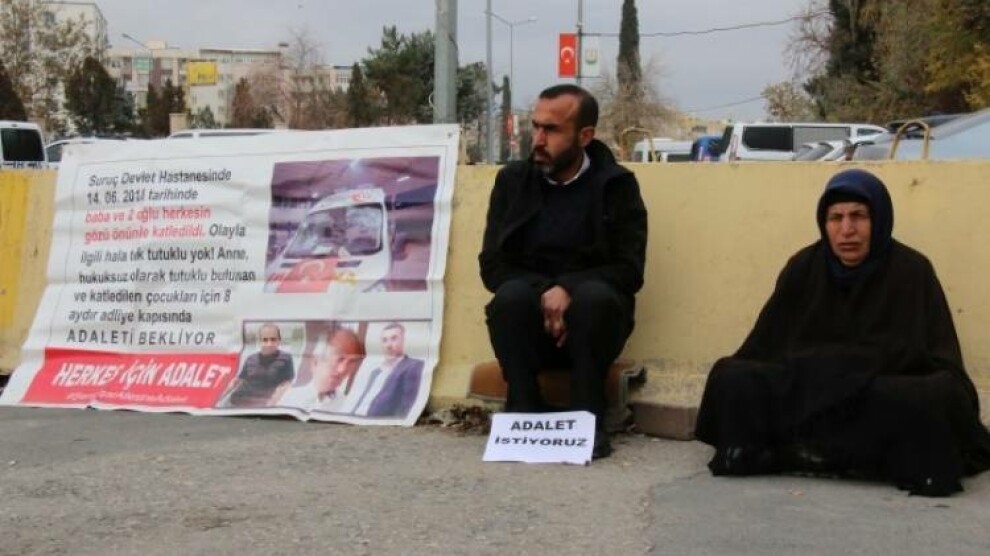 Riha - Urfa'nın Suruç ilçesinde 14 Haziran 2018'de AKP Milletvekili İbrahim Halil Yıldız’ın koruma ve yakınlarının saldırısı sonucu eşi ve iki oğlunu yitiren Emine Şenyaşar ile saldırılardan yaralı kurtulan oğlu Ferit Şenyaşar’ın Urfa Adliyesi önünde 9 Mart'ta başlattığı Adalet Nöbeti, 307'nci gününde devam ediyor.