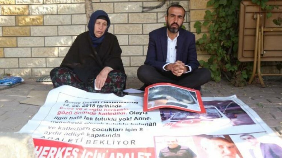 Riha - Urfa'nın Suruç ilçesinde 14 Haziran 2018 tarihinde AKP Milletvekili İbrahim Halil Yıldız’ın koruma ve yakınlarının saldırısı sonucu eşi ve iki oğlunu yitiren Emine Şenyaşar ile saldırılardan yaralı kurtulan oğlu Ferit Şenyaşar’ın Urfa Adliyesi önünde 9 Mart'ta başlattığı Adalet Nöbeti 296’ncı gününde devam ediyor. Aile, Elazığ Cezaevi’nde 3 yıldır tek kişilik hücrede tutulan Fadıl Şenyaşar ile haftalık telefon görüşmesi yaptı. Anne Emine Şenyaşar, sağlık sorunlarından kaynaklı adliye binası önüne gelemedi, nöbeti Suruç ilçesinde bulunan evlerinde sürdürüyor.