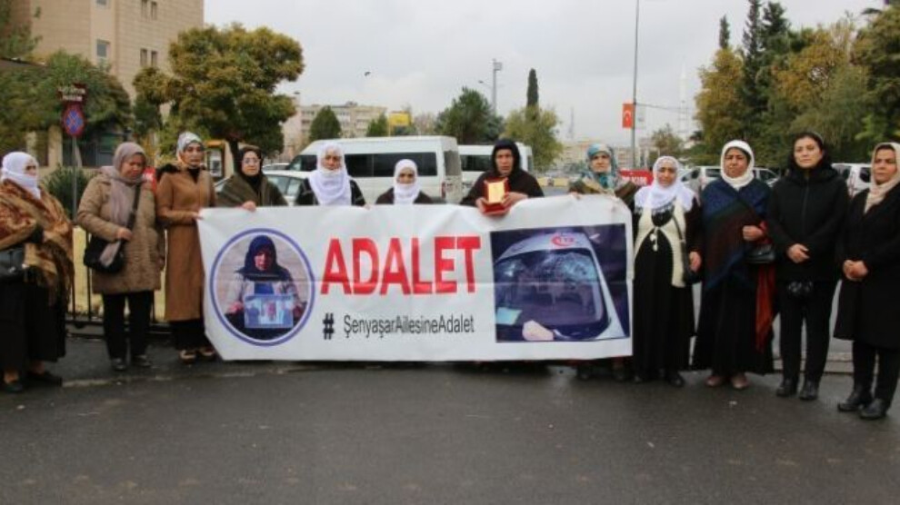 Riha - Pirsûs (Suruç) ilçesinde, 14 Haziran 2018 tarihinde AKP Milletvekili İbrahim Halil Yıldız’ın koruma ve yakınları tarafından eşi ve iki oğlu katledilen Emine Şenyaşar ile saldırılardan yaralı kurtulan oğlu Ferit Şenyaşar’ın, Urfa Adliyesi önünde başlattığı Adalet Nöbeti 628’inci gününde devam ediyor.