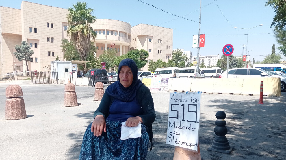 Riha- Suruç’ta 14 Haziran 2018 tarihinde AKP Urfa Milletvekili İbrahim Halil Yıldız’ın koruma ve yakınları tarafından eşi ve iki oğlu katledilen Emine Şenyaşar ile katliamdan yaralı kurtulan Ferit Şenyaşar’ın Urfa Adliyesi önündeki adalet nöbeti 519’uncu gününde devam ediyor.