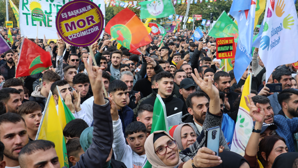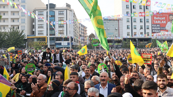 Êlih- ‘Demokrasi ve Özgürlük’ sloganıyla Êlih’te, Kürt sorunun demokratik yollarla çözülmesi, Kürt Halk Önderi Abdullah Öcalan'ın fiziki özgürlüğünün sağlanması ve kayyım atamalarının sonlandırılması istemiyle 17 Kasım’da yapılan mitinge on binlerce kişi katıldı. Barış ve irade vurgusunun yapıldığı mitinge katılan kadınlar, Kürt halkının barıştan yana tavır aldığına dikkat çekerek, “Eğer onlarda barış istiyorsa tecridi kaldırıp, kayyıma son vermeliler” dedi.