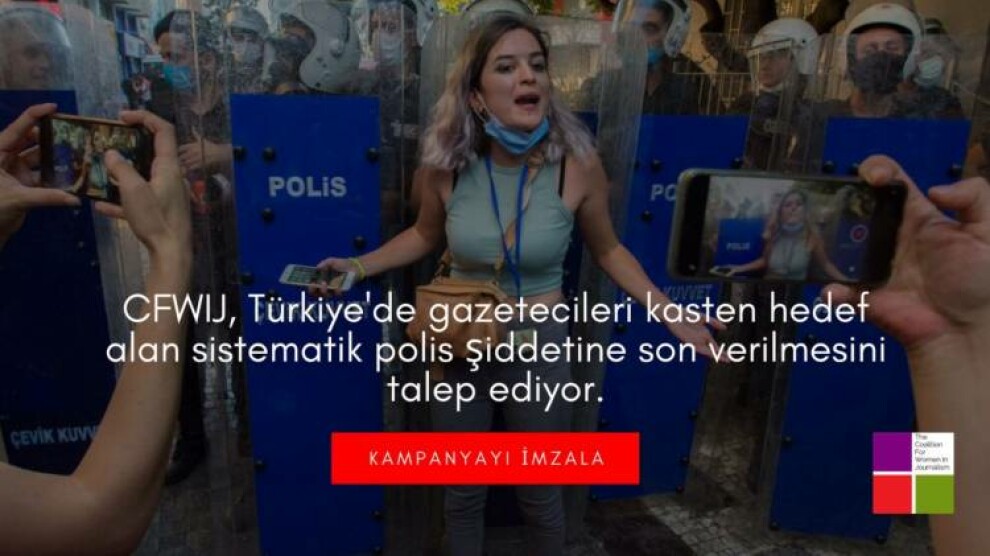 Haber Merkezi - Gazetecilikte Kadın Koalisyonu (CFWIJ), son dönemde gazetecilerin polis tarafından doğrudan hedef alınmasına ve haber takibi yapan kadın gazetecilerin maruz kaldığı polis şiddetine karşı sahada özgürce ve güvende olması talebiyle bir imza kampanyası başlattı. CFWIJ’in kampanyaya ilişkin yayınladığı açıklamada yer alan verilere göre, yılın başından bu yana Türkiye’de en az 44 kadın gazeteci polis şiddetine maruz kaldı, mesleki faaliyetleri gerekçe gösterilerek 3 kadın gazeteci evlerine yapılan baskınla gözaltına alındı. En az 13 kadın gazeteci ise sahada haber takibi yaparken gözaltına alındı. Verilere göre, birçok gazeteci ise sahada polisin sözlü şiddetine de maruz kaldı. Suruç Katliamı’nın altıncı yıldönümü olan 20 Temmuz’da yaşamını yitirenler için yapılan anma etkinliğini takip eden gazetecilerin, polislerce ablukaya alındığını, fiziksel şiddetle karşı karşıya kaldığına yer verilen CFWIJ’nin verilerine göre, en az 8 kadın gazetecinin, polisler tarafından şiddete maruz bırakıldı.