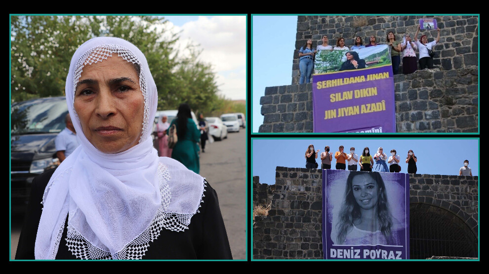 Yaşanan katliama tepki gösteren isimlerden biri de geçtiğimiz yıl Halkların Demokratik Partisi (HDP) İzmir İl Örgütü’nde SADAT’la bağlantısı olduğu belirtilen Onur Gencer tarafından katledilen Deniz Poyraz’ın annesi Fehime Poyraz. Kürt kadınların bilinçlendiği ve özgürlük talep ettikleri için katledildiklerini belirten anne Fehime Poyraz, konuşmasına Jina Mahsa Amini’nin ailesine baş sağlığı dileyerek başladı.