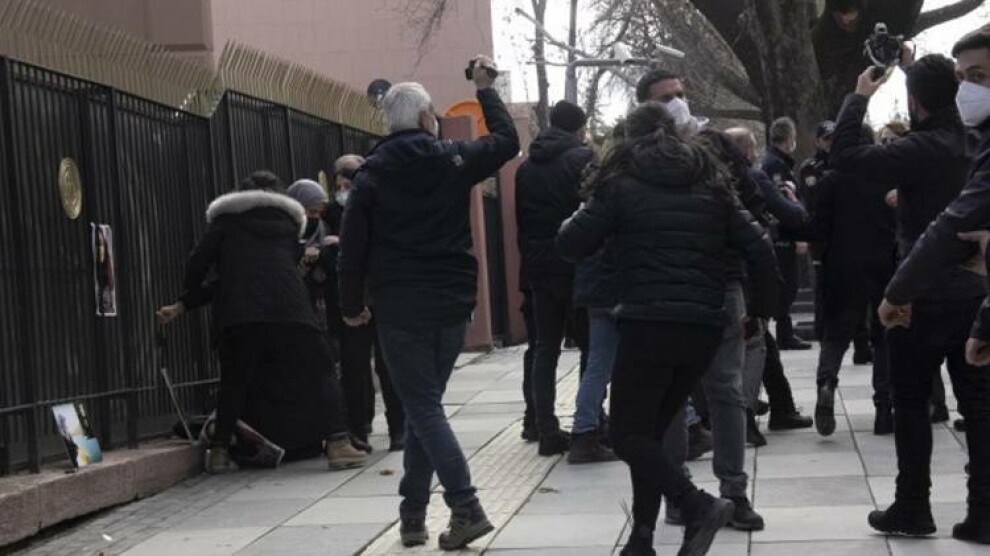 Adalet Bakanlığı önünde oturan Gülistan Doku’nun ailesine polis müdahale ederek, gözaltı aracına bindirdi.