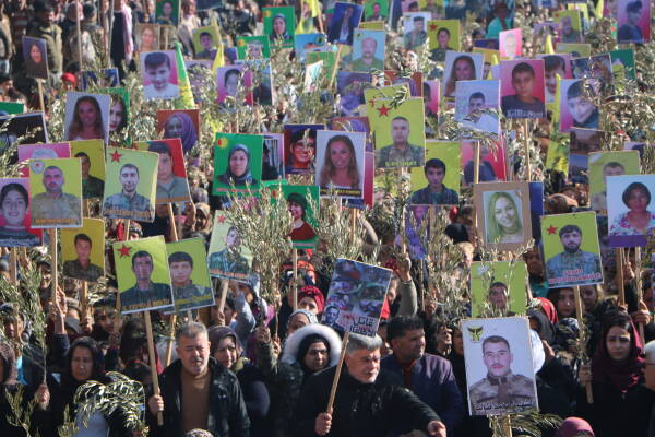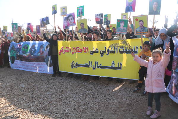 Konuşmanın ardından atılan “Yaşasın Efrin direnişi”, “Yaşasın çağın direniş şehitleri” sloganları ile eylem son buldu.