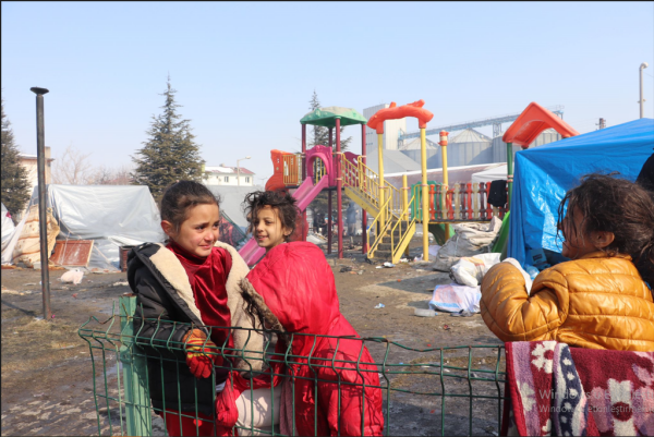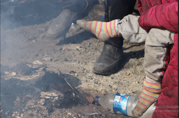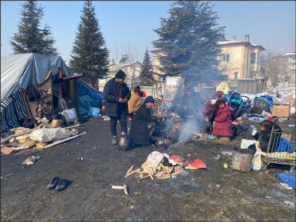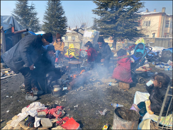 Kentte halk kendilerine sığınacak alanlar yaratmaya çalışıyor. Elbistan’da yaşayan Suriyeliler de savaştan kaçıp depremin en acı yüzü ile karşılaştı. Sağdan soldan bulduklarıyla kendilerine sığınak yaptıklarını anlatırken çadır bile denilemeyecek daracık bir alanda 60 kişi yaşamaya çalışıyorlar. Burada en dikkat çekici olan ise çocuklar. Çocuklar kendinden küçük kardeşleri ile birlikte ya bir ateş parçası ya da derme çatma alanlarda ısınmaya çalışıyorlar.