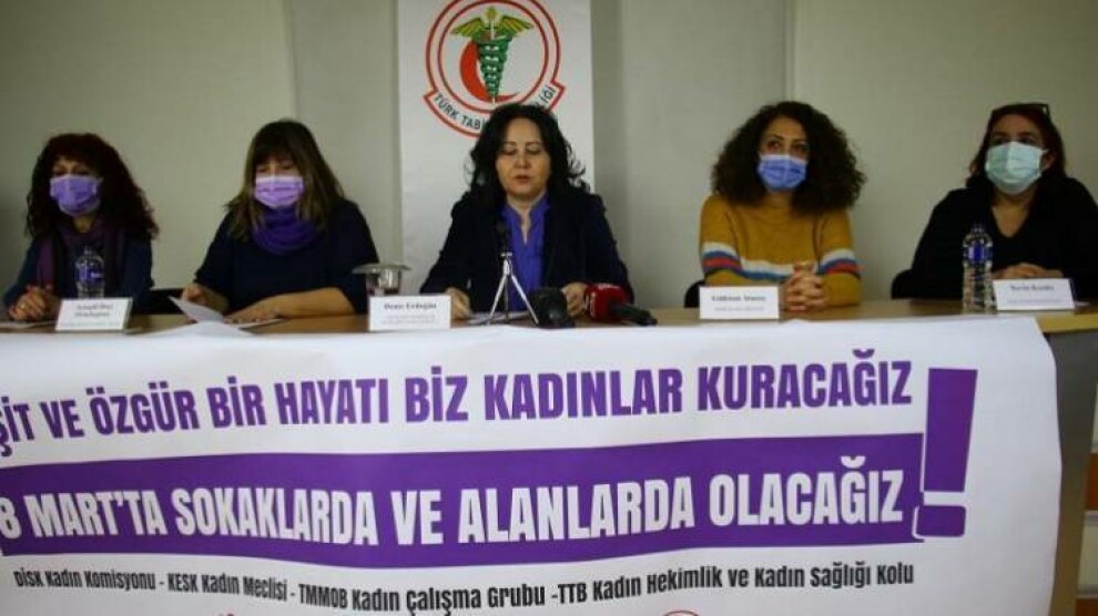 Ankara - Devrimci İşçi Sendikaları Konfederasyonu (DİSK) Kadın Komisyonu, Kamu Emekçileri Sendikaları Konfederasyonu (KESK) Kadın Meclisi, Türk Mühendis ve Mimar Odaları Birliği (TMMOB) Kadın Çalışma Grubu, Türk Tabipleri Birliği (TTB) Kadın Hekimlik ve Kadın Sağlığı Kolu, TTB Genel Merkezi'nde 8 Mart Dünya Kadınlar Günü nedeniyle ortak basın açıklaması düzenledi.
