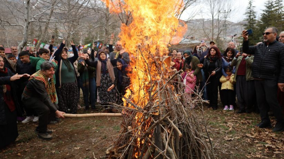 Konuşmaların ardından Newroz ateşi yakılırken, kutlamalar sanatçıların sahne almasıyla sürdü.