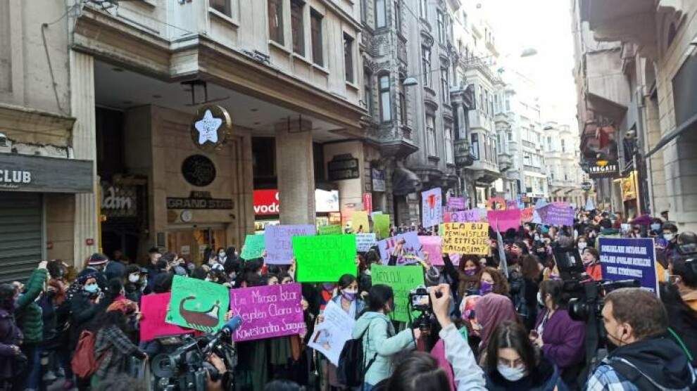 Öte yandan İstiklal Caddesi’ne çıkan tüm sokaklar polis bariyerleri ile kapatılmış durumda. Polis caddenin yaya trafiğine kapatıldığı anonsları yapıyor. Kadınların geçişlerinin de engellendiği sosyal medya hesaplarından paylaşılmaya başlandı. Polisin cadde ve sokakların geçişlerini engelleyerek kadınları Sıraselviler Caddesi’ne yönlendirdiği belirtiliyor.