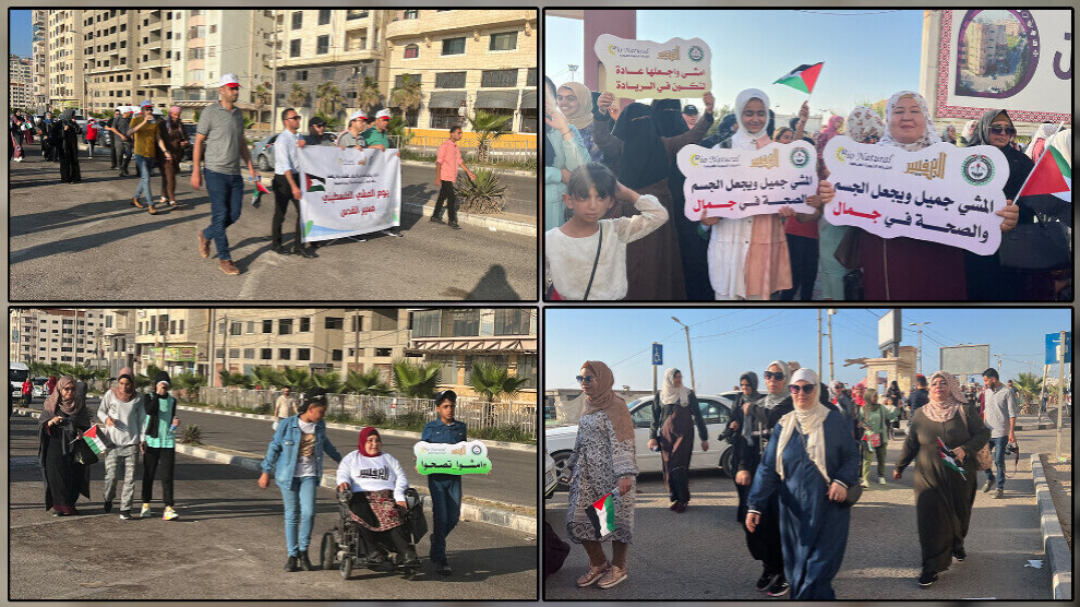 Sağlıklı bir toplum ve egzersizin önemini teşvik etmek için Gazze'de “Kudüs Yürüyüşü” düzenlendi.