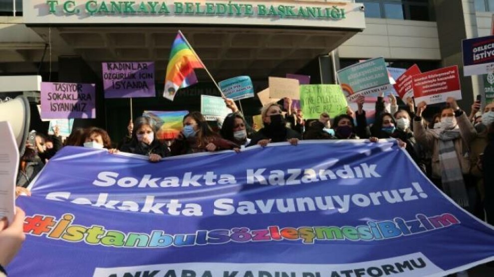 Ankara - Cumhurbaşkanlığı Kararnamesi ile İstanbul Sözleşmesi’nin feshedilmesine karşı Ankara Kadın Platformu öncülüğünde kadınlar Sakarya Caddesinde bir araya geldi. Kadınlar, “Sokakta kazandık, sokakta savunacağız. İstanbul sözleşmesi yaşatır” pankartı ile alana giriş yaptı. Kadınlar adına açıklamayı Rüya Özgür yaptı. İstanbul Sözleşmesi’nin yalnız kadınlar için değil LGBTİ+ler, çocuklar, yaşlılar ve şiddete maruz kalma tehdidi altında olan herkes için bir güvence olduğunu belirten Rüya Özgür, sözleşmelerin devlete sorumluluk yüklediğini kaydetti.