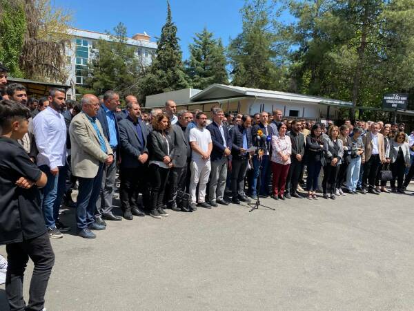 Burada yapılan açıklamada avukatların haber verilmesi halinde ifade verebilecek konumda olduğu belirtilerek “14 Mayıs yaklaştıkça rejiminin sona ereceği gerçeğiyle yüzleşen siyasal iktidar, 20 yılı aşkın süredir devam ettiği politikayla, insan hakları mücadelesini sekteye uğratmak adına, yargı eliyle savunmayı, halkın haber alma hakkını ve muhalefeti etkisiz hala getirmeye çalışmaktadır. Toplumun tüm muhalif kesimlerine ve hak savunucularına karşı sürdürdüğü yargı tacizini; avukatlar, hakikati ortaya çıkaran basın emekçileri ve siyasetçiler üzerinde de sürdürmeye devam etmiştir” denildi. Gözaltı operasyonlarının iktidarın son çırpınışları anlamına geldiği belirtilen açıklamada “Biz buradayız. Bizler kazanacağız sizler gideceksiniz” ifadeleri yer aldı.