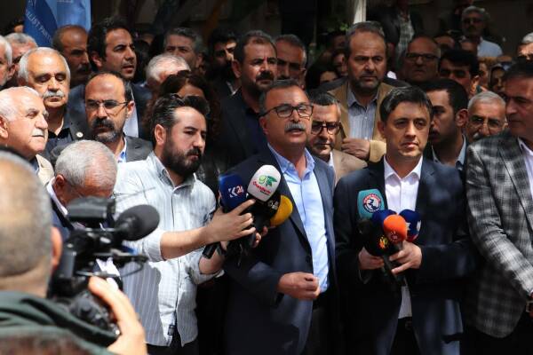 Ofiste bulunan seçim bürosu önünde basın açıklaması yapıldı. Açıklamada ilk olarak konuşan HDP Êlih Milletvekili Rüştü Tiryaki, siyaset yapamayan iktidarın gözaltılarla siyaset yapmaya çalıştığını belirtirken geri adım atmayacaklarını dile getirdi.