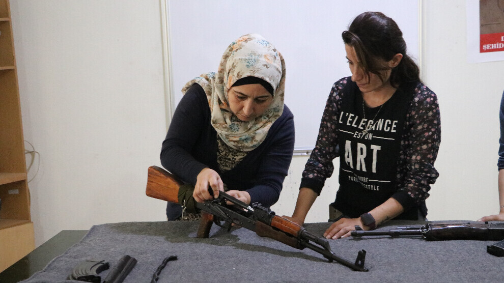 Şêx Meqsûd mahallesindeki kadınlar, kendilerine yönelik saldırılar karşısında topraklarını, çocuklarını, ailelerini ve mahallelerini korumak için silah eğitimi görüyor.
