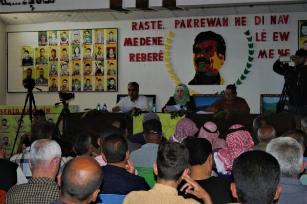 Til Temir ilçesindeki Şehit Aileleri Meclisi Salonu’nda başlayan toplantı, toplumsal sözleşme taslağının toplumun büyük kesimiyle tartışılması amacıyla yapılıyor. Toplantıya, Hesekê Kantonu Meclisi Eş Başkanı Semer El-Ebdullah ve Kuzey ve Doğu Suriye Özerk Yönetimi sözcüsü Luqman Ehmê’nin yanı sıra Til Temir, Zirgan ve Çiyayê Kezwana ilçe meclislerinin eş başkanları, Til Temir’deki komün eş başkanları, Özerk Yönetim kurum üyeleri ve sivil toplum kurumlarının temsilcileri katıldı.