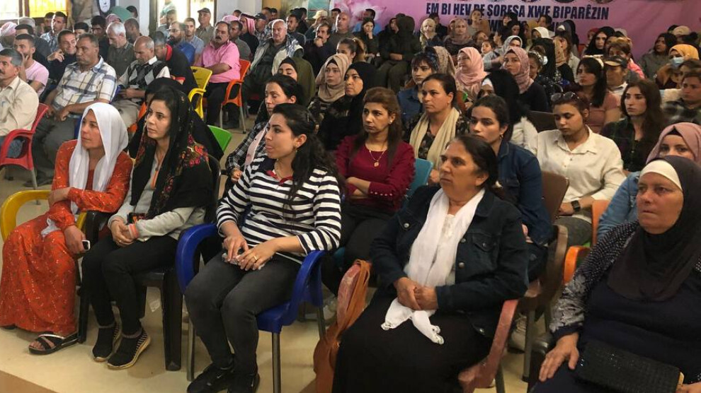 Kuzey ve Doğu Suriye Toplumsal Sözleşme İnşa Komitesi, Til Temir’de toplumun farklı kesimleriyle sözleşme taslağını tartışıyor. Kadınlar, “çözüm için ortaklığın” tüm sorunları ortadan kaldıracağına inanıyor.
