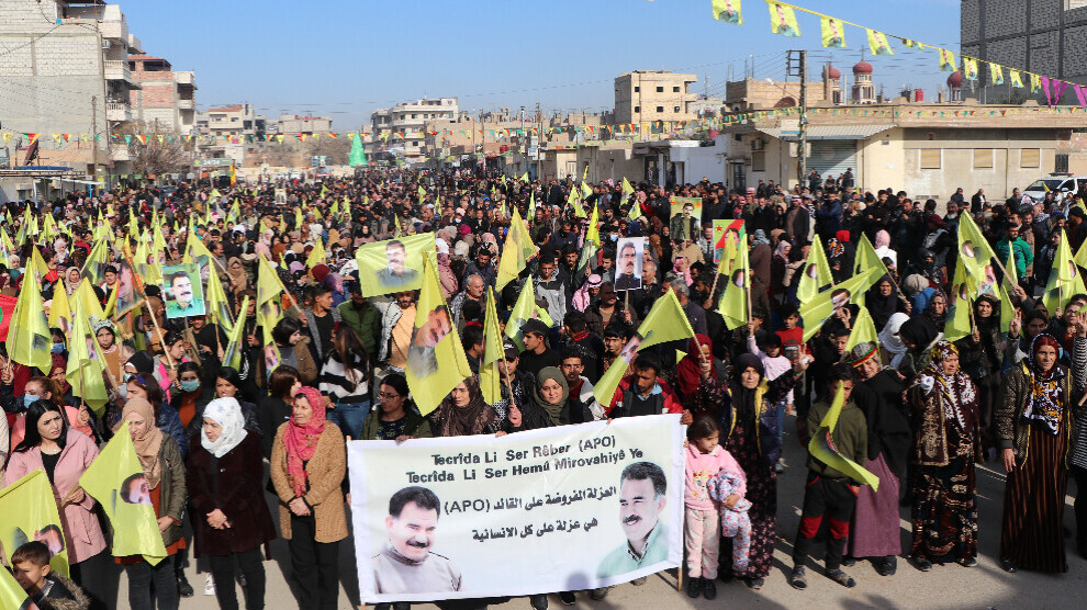 Kongra Star öncülüğünde Kuzey ve Doğu Suriye’nin Hasekê kentinde düzenlenen mitingde halklar Kürt Halk Önderi Abdullah Öcalan’ın fiziki özgürlüğünü istedi.
