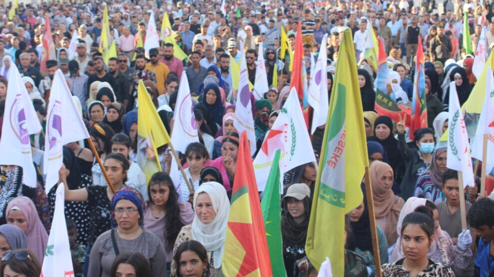 Kuzey ve Doğu Suriye’nin Hasekê kentinde bir araya gelen yurttaşlar Türkiye’nin gerçekleştirdiği saldırıları yürüyüş ile kınadı.