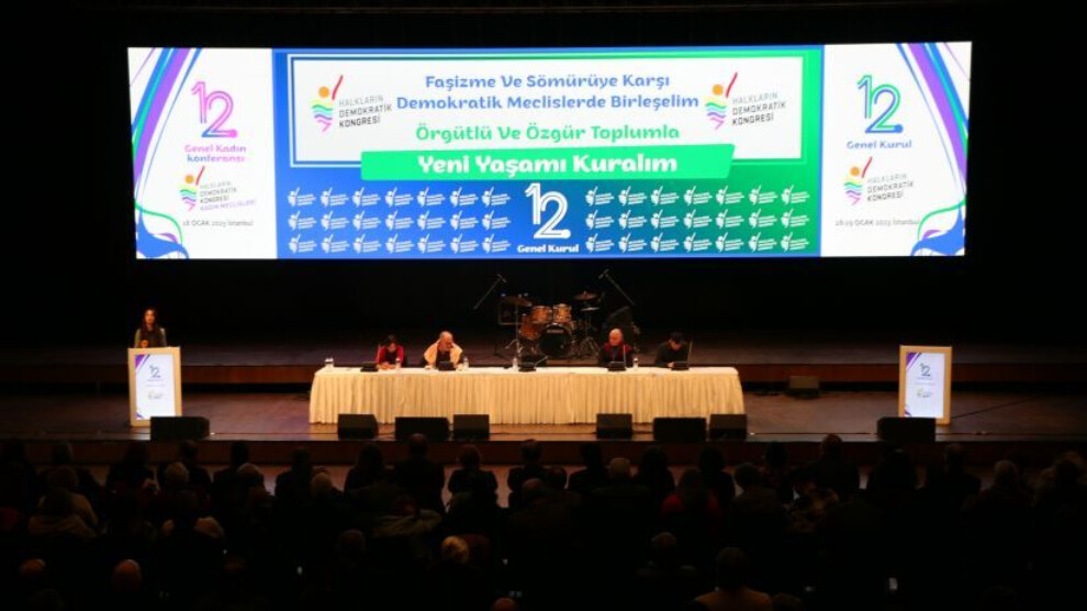 İstanbul – Halkların Demokratik Kongresi (HDK), “Faşizme ve sömürüye karşı demokratik meclislerde birleşelim. Örgütlü ve özgür toplumla yeni yaşamı kuralım” sloganıyla İstanbul’da 12’nci Genel Kurulu’nu gerçekleştirdi. HDK Kadın Kurulu ile dün başlayan Genel Kurul, ikinci gününde Kongrenin tüm meclislerinin katılımıyla devam etti. Saygı duruşuyla başlayan Genel Kurul'da, HDK’nin mücadelesini konu alan, ilk Eş Sözcüleri Sebahat Tuncel ve Ertuğrul Kürkçü’nün mesajlarının yer aldığı sinevizyon gösterimi yapıldı.