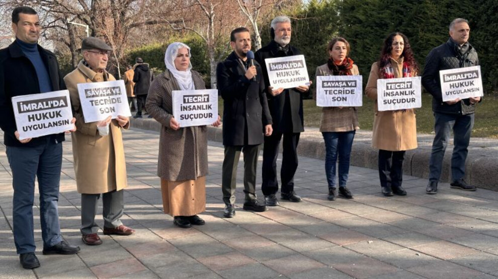Milletvekilleri Muazzez Orhan, Remziye Tosun, Hüseyin Kaçmaz, Kemal Peköz, Erdal Aydemir, Nuran İmir, Celadet Gaydalı ve Abdullah Koç, “İmralı’da hukuk uygulansın” ve “Tecrit insanlık suçudur” dövizleriyle Meclis Dikmen Kapısı’nda açıklama yaptı.