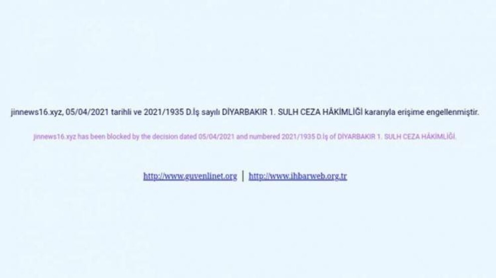 Haber Merkezi – Jinnews’in yayın yaptığı 3 internet sitesine erişim engeli geldi. Ajansın yayın yaptığı “jinnews16.xyz”, “jinnews17.xyz”, “jinnews18.xyz” uzantılı adreslere Diyarbakır 1’inci Sulh Ceza Hakimliği kararıyla erişim engeli getirildiği öğrenildi.