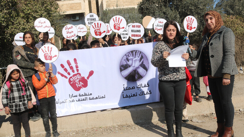 Qamişlo –Kuzey ve Doğu Suriye’nin Rakka kentindeki El-Meşleb mahallesinde dün 25 yaşındaki Nûra Ebdil-Ehmed, katledildi. Hamile ve 8 yaşında bir çocuğu olan Nûra Ebdil-Ehmed’in evine giren bir grup hırsız tarafından katledildiği belirtildi. Konuya ilişkin Sara Kadına Yönelik Şiddetle Mücadele Örgütü ve Şawîşa Derneği, Kuzey ve Doğu Suriye’nin Qamişlo kentinde yaptıkları basın açıklamasıyla Nûra Ebdil-Ehmed’in katledilmesini kınadı.