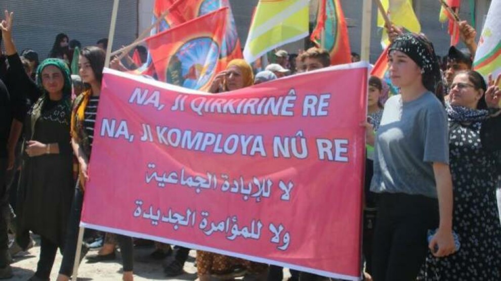 Türkiye’nin Federal Kürdistan Bölgesi topraklarına yönelik saldırılarına tepki gösteren halk, Kobanê’de Özgür Kadın Meydan’ında biraraya gelerek yürüyüş gerçekleştirdi. Tüm dünyanın yaşananları gördüğünü ancak suskun kaldığına dikkat çeken kadınlar, KDP’ye de şu çağrıda bulundu: “KDP asla Efrîn ve Serêkanîye’yi unutmamalıdır. KDP konuya politik ve ulusal bir konu olarak bakmalıdır. Yanlış politikalardan bir an önce dönülmelidir.”
