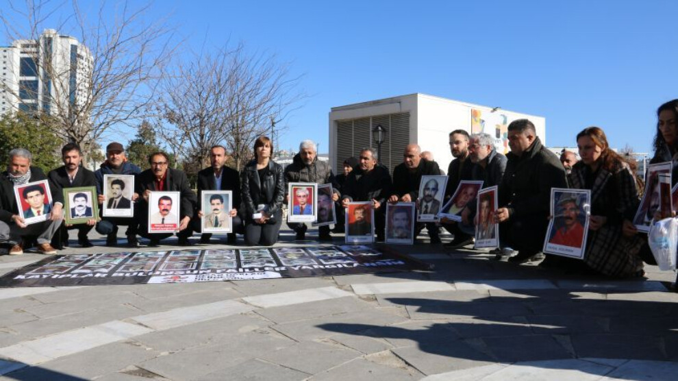 Bu haftaki eylemde 1994 yılında Amed'in Xana Axpar (Çınar) ilçesine bağlı Axtepe Mahallesi’nde kaybedilen Ömer Öner ve Nuri Dayan'ın akıbeti soruldu.