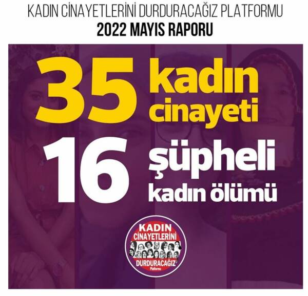 İstanbul - Kadın Cinayetlerini Durduracağız Platformu (KCDP) basında yer alan haberlerden ve kendilerine yapılan başvurulardan derledikleri Mayıs ayı kadına yönelik şiddet raporunu açıkladı. 2022 Mayıs ayında 35 kadın erkekler tarafından öldürüldü. 16 kadın ise şüpheli bir şekilde ölü bulundu.