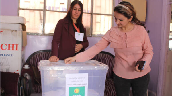 Saat 09.00'da başlayan ön seçim saat 15.00'te sona erecek. Kongra Star, Kadınların Toplumsal Savunma Gücü, Şehit Aileleri Meclisi ve PYD üyeleri Kongra Star merkezlerine giderek oylarını kullanıyor.