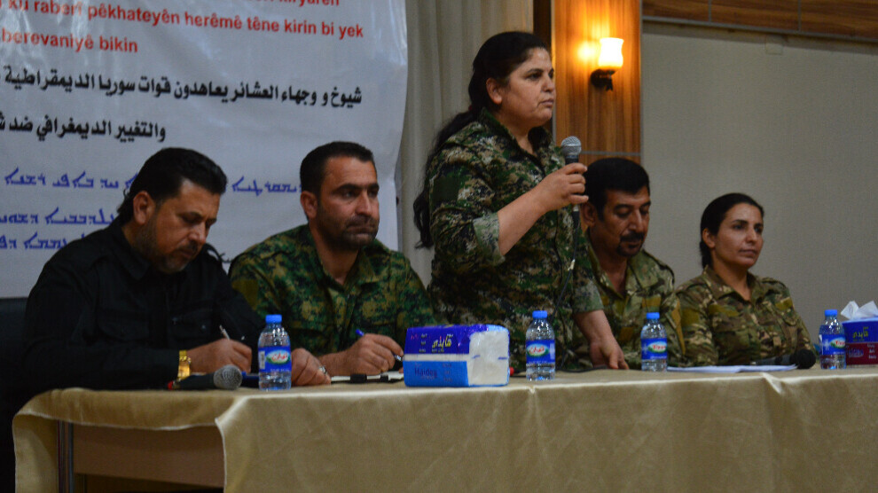 Kürt ve Arap aşiretlerinin ileri gelenleri ve aydınların katılımıyla yapılan çalıştayda konuşan Bêrîtan Mihemed, “Suriye bileşenlerinin birliği hepimizin kaderini belirleyecektir. Saldırılara karşı toplumsal örgütlenmeyi güçlendirmeliyiz” dedi.