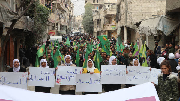 Qamişlo’da kadınlar, Kongra Star öncülüğünde sokaktaydı. Yüzlerce kadın, Kongra Star üyeleri, Şehit Aileleri Meclisi üyeleri, Demokratik Birlik Partisi (PYD) üyeleri ve Demokratik Toplum Hareketi (TEV-DEM) üyelerinin katılımıyla Sinaa Kavşağı’ndan Şehit Heyîsem Kiço Meydanı’na yürüdü. Rojava’dan Rîhan Loqo şunları söyledi: