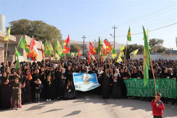 “1998’de komplocu güçler, Kürdistan’ı bölmek, Özgürlük Hareketi’ni çökertmek ve Ortadoğu’yu kendi istedikleri biçimde dizayn etmek için harekete geçti. Buna karşı Kürt halkı, Özgürlük Hareketi ve Önderlik direndi. Ortadoğu’da halkların ideolojik birliği kurulmasın diye uluslararası bir komplo ile Rêber Apo’yu esir aldılar. Bu, Lozan ve Sykes-Picot’un devamıdır. Komplocular, Ortadoğu’da halkları birbirine düşürmek ve kendi çıkarları için yönetmek istedi. Ancak izolasyon ve zor koşullar altında Rêber Apo, liberalizm ve kapitalizmin parçalayıcı etkilerine karşı ‘Halkların birliği yaşasın’ diyerek halk kardeşliği projesini başlattı. Biz insanlık temelinde hareket ediyoruz, kan üzerinden değil, ahlak ve halkların birliği üzerinden ilerliyoruz. Bizim ölçümüz insan, vicdan ve ahlaktır. Tüm komplocu ve kapitalist güçlerin ahlaksız eylemlerine rağmen Rêber Apo insanlıktan taviz vermedi.”
