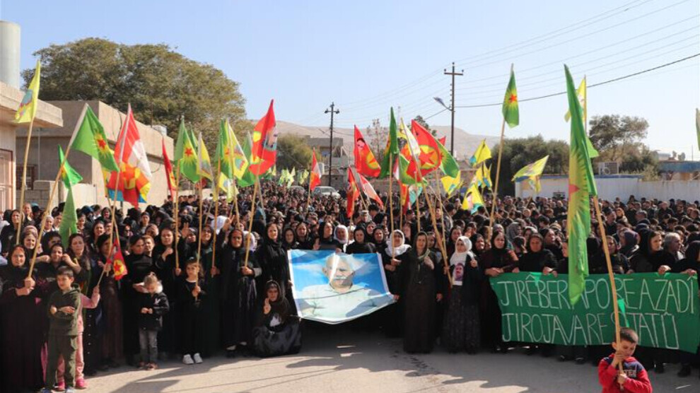 Mexmûr- Mexmûr'daki Şehit Rüştem Çudi Mülteci Kampı sakinleri, Kürt Halk Önderi Abdullah Öcalan'a karşı 15 Şubat'ta düzenlenen uluslararası komployu kınamak için kitlesel bir yürüyüş düzenledi.
