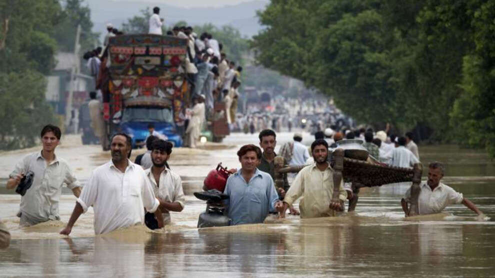 Haber Merkezi - Yetkililer Pakistan’ın üçte birinin tamamen sel suları altında olduğunu açıklıyor. Ülkede, muson yağmurlarının yol açtığı seller nedeniyle Haziran ayından bu yana ölenlerin sayısı çoktan bini aştı. İklim Bakanı yaşananları "hayal edilemez boyutta bir kriz" sözleri ile tanımlarken milyonlarca kişinin yerlerinden olduğu 33 milyon insanın sellerden etkilendiğini söyledi. Bu tam olarak ülke nüfusunun yaklaşık yüzde 15'i anlamına geliyor.