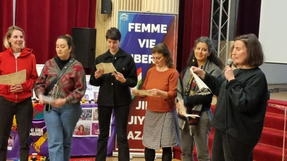 Haber Merkezi - Kürt Kadın Hareketi TJK-F, Jin Jiyan Azadî Platformu, Fransa Ulusal Kadın Koordinasyonu, Solidaires Sendikalar Birliği, Alerta Feminista, 10. Paris Belediyesi partneryasında 23 Aralık ve 9 Ocak’ta katledilen Kürt kadınların anısına “Jin Jiyan Azadî, İntikamımız Kadın Devrimi olacak” şiarıyla Fransa’nın başkenti Paris’te buluştu. Etkinlik 10'uncu Paris Belediyesi salonunda Bölge Belediye Başkanı Alexandra Cordebard’ın açılış konuşması ile başladı.