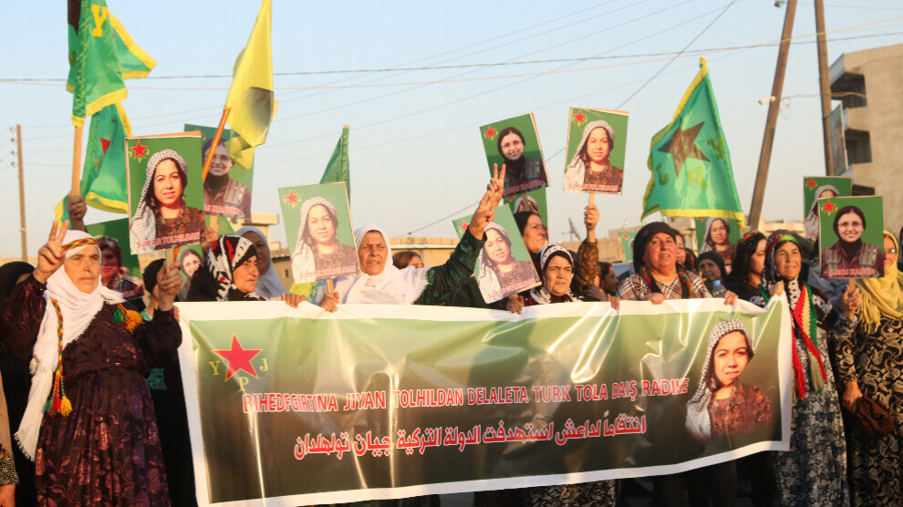 Qamişlo Kantonu Kongra Star Örgütü, 22 Temmuz’da Türkiye’nin Kuzey ve Doğu Suriye’ye yönelik insansız hava aracıyla saldırı düzenlemesi sonucunda Jiyan Tolhildan, Roj Xabûr ve Barîn Botan’nın katledilmesini kınayarak, eylem yaptı.  Eylemde Türkiye’nin saldırılarını bir an önce bırakması çağrısında bulunuldu. Qamişlo’nun Şerqi kavşağı önünden başlayan yürüyüş, Delil Saroxan mezarlığına kadar devam etti. Kadınlar, katledilen üç kadının fotoğraflarını taşıdı. Eyleme kaınla mikrofonlarımıza konuştu.