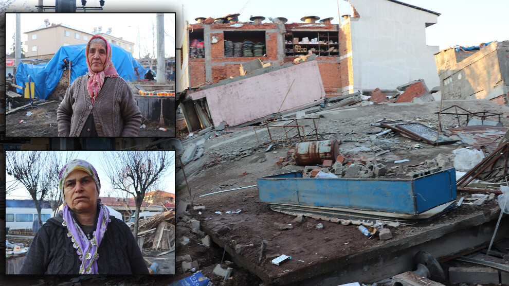 Yaşanan depremin ardından üç gün arabada kaldıktan sonra bir tamir dükkânına geçtiklerini belirten Serê Golanlı Necla Ertaş tek göz bir odada, 10 kişi kaldıklarını ifade etti. Halkın yardımları ile ayakta durduklarını söyleyen Necla Ertaş, çadır da verilmediğini aktardı. Necla Ertaş konuşmasının devamında şunlara yer verdi: “Şu an yerlerde yatıyoruz. Depremden sonra üç gün boyunca arabalarda yaşadık. İlk günlerde yüksek yerlere çıkıyorduk. Evlerimize de giremiyoruz. Buraların hepsi yıkıldı buralarda bir şey kalmadı. Halkımız bize çok destek oldu. Sağ olsunlar biz orada yaşıyoruz ama bize her türlü yiyecek ve ısıtıcı getirdiler. Dükkânda yaşıyoruz çünkü bize çadır vermediler. Kaldığımız yerde tamir dükkânı hep birlikte orada kalıyoruz.”