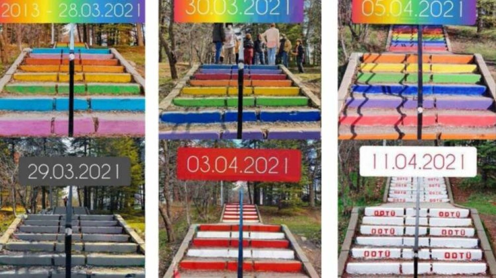 Kayyum Verşan Kök’ün Gökkuşağı Merdivenlerine savaş açtığı kaydedilen açıklamada, şunlar belirtildi: “Bizler pandemi döneminde birçok sorun ile karşı karşıya kalıp akademik yılımızın mahvoluşunu izlerken, kayyım ODTÜ yönetimi Gökkuşağı Merdivenlerini trans bayrağı renklerine boyanan merdivenlerin üstü kayyum yönetim tarafından defalarca kapatıldı, her kapatılışında merdivenler dayanışma ile yeniden renklerine kavuşturuldu. Merdivenlerin son renklendirilişinin ardından ise öğrenciler renklerini savunmak çadırlı nöbete başladı. İki aya yakın bir süredir merdivenlerin başında nöbet devam ediyor. Kayyum Verşan yeniden boyayamadığı merdivenler için oldukça hırslanmış olacak ki eylemle alakası olduğunu düşündüğü en az 45 öğrenciye soruşturma açılması için talimat vermiş durumdu. Bu 45 kişiden kimisine 5 soruşturma birden açıldığını öğrenmiş oluyoruz.”