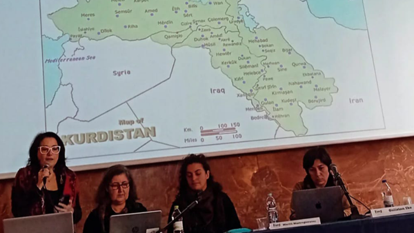 Marilù Mastrogiovanni moderatörlüğünde gerçekleşen Beşinci Panel’de ise jineolojî, Kürdistan’da kadın devrimi ve medyanın durumu ele alındı. Jineolojî ve Kürdistan kadın mücadelesine dair bir sunum yapan Jineolojî akademisi üyesi Necibe Qeredaxî, bu mücadelenin toplumu dönüştürücü gücüne değindi.