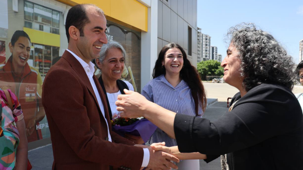 Memleketi Meletî’den gelen Sabahat Tuncel’i, aralarında Demokratik Bölgeler Partisi (DBP) Eş Genel Başkanları Çiğdem Kılıçgün Uçar ve Keskin Bayındır ile milletvekillerin olduğu grup kent girişindeki petrol ofisinde karşıladı. Kadın siyasetçiler daha sonra parti binasında “Jin, jiyan, azadî” sloganıyla karşılandı. Ziyaretlerin kabul edildiği buluşmada ilk olarak konuşan DEM Parti İl Eşbaşkanı Pınar Sakık Tekin, “Mücadelemiz tüm tutsaklar çıkana kadar devam edecek” diye belirtti.