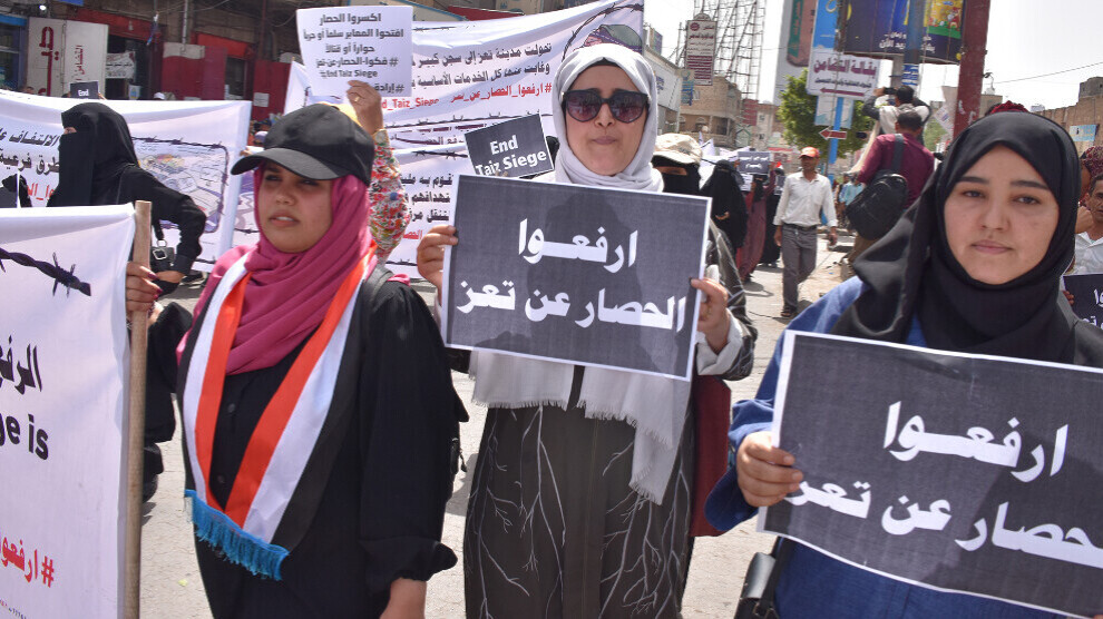 Yemen- Yemen'in Taiz kentinde yaşayan kadınlar, tüm parti, kurum ve kadın inisiyatiflerinden talepte bulunarak, Taiz kentinde süren ablukanın kaldırılmasını ve ana yolların açılmasını istedi. Kadınlar, alternatif yolların açılması planına tepkilerini dile getirdiler.